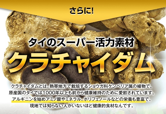 ◆アルギニン含有量の高い栄養素材として有名なクラチャイダムを配合!