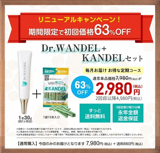 ◆原材料にこだわった高品質なデンタルジェル!「噛みがき」がセットで付いてくるキャンペーンを実施してるお得なドクターワンデル+カンデルセット!