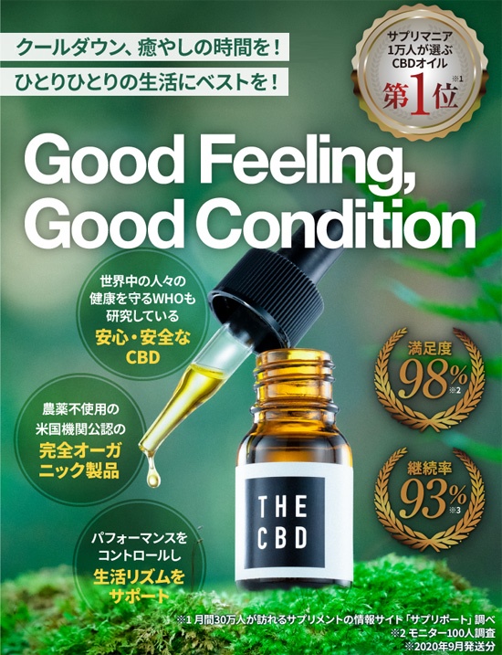 ◆迷ったらコレがおすすめ♪CBDの純度99%以上!国産ブランドの完全オーガニック製品!手頃な価格で良質なCBDオイルを買いたい人はTHE CBD!