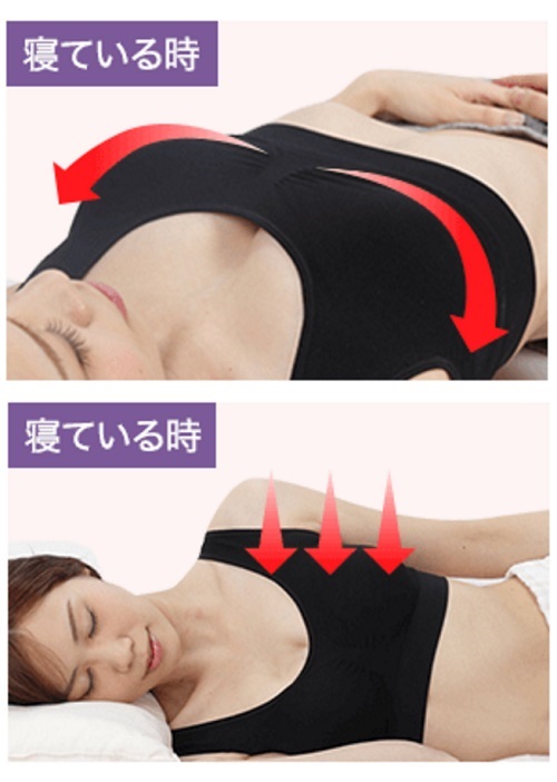ですので、寝ている間はブラをしてバストがなるべく動かないようにする必要があるんです。しかも、ふつうのブラだとホールド感が弱くてバストが動いてしまうので、かならずナイトブラを着用してください!