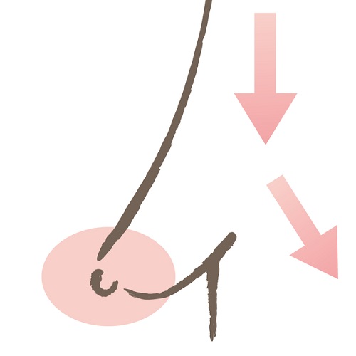 出産後は母乳をつくるためにバスト自体が非常に大きくなります。そのため、妊娠前よりもバストの重さで垂れ下がりやすく、クーパー靭帯が伸びやすい状態になっています。だら〜んと伸びやすい状態になっています。そのうえ、子どものと添い寝をしたり、バタバタと家の中を動くことも多くなるので今まで以上にクーパー靭帯に負担がかかってしまうんです。