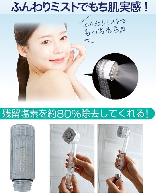 ◆塩素を約80%除去してくれる肌に優しいシャワー!