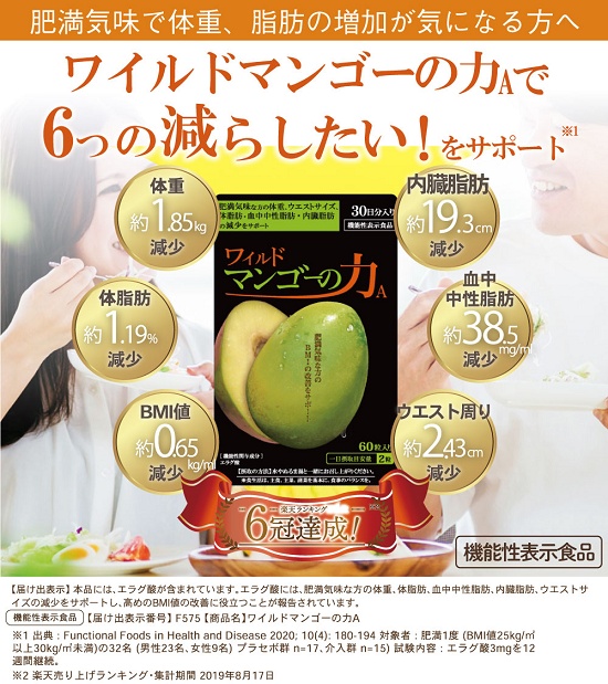◆迷ったらコレがおすすめ♪6つの機能性がそろっている注目サプリ ワイルドマンゴーの力A!