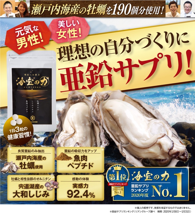 ◆オルニチンと亜鉛をたっぷり配合!どちらかと言えば亜鉛を多めに取りたい人は海宝の力!