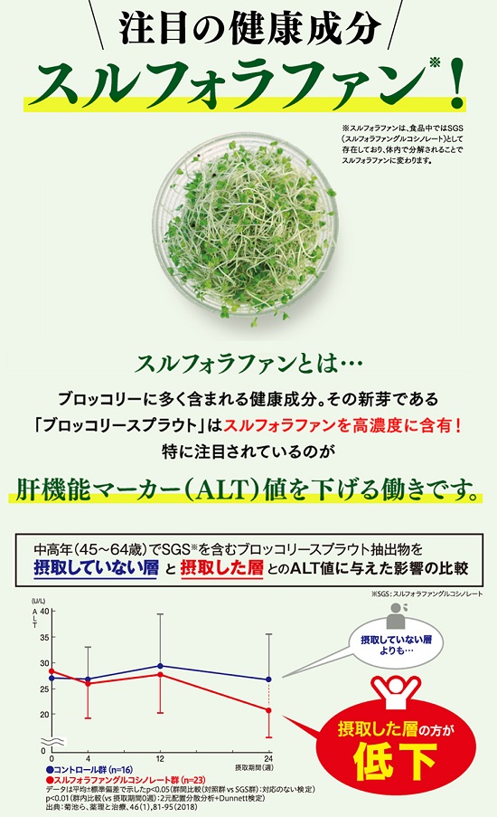 ◆「ALT値」を改善する機能性表示食品!特に「ALT」の数値が気になっているならスルフォラファン!