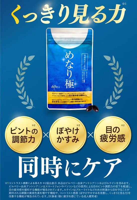◆目の専門家と共同開発した、こだわりのサプリメント!スマホなどの使用で日頃から目の疲労感を感じる人はめなり極!