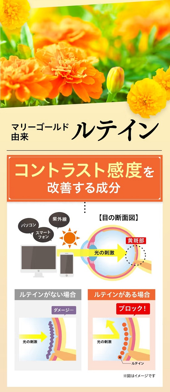 ◆ブルーライトなど光の刺激から目を守る、機能性関与成分「ルテイン」配合!
