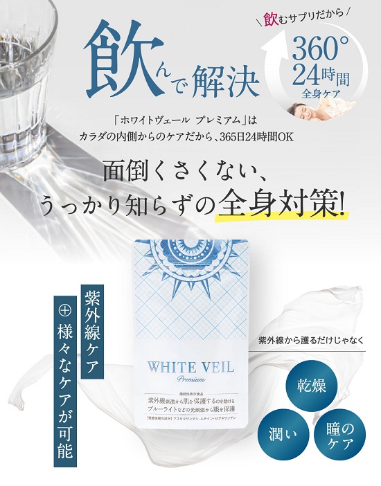 ◆迷ったらコレがおすすめ!「紫外線の刺激」と「ブルーライトの刺激」の2つに対応!口コミ評価がとても高いホワイトヴェール プレミアム!