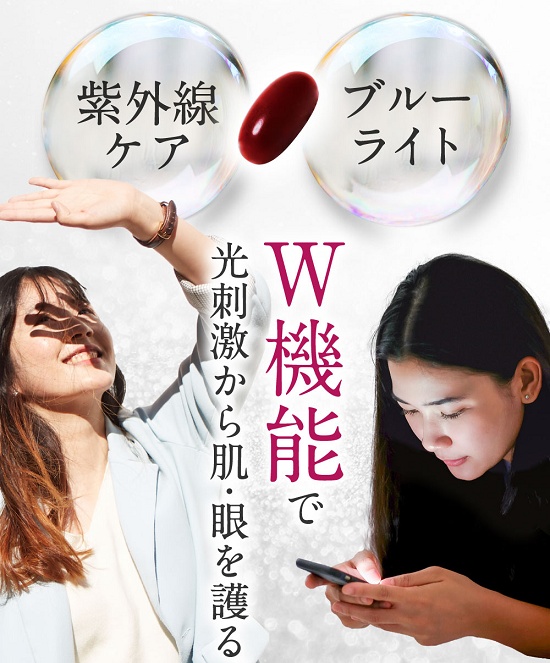 ◆紫外線対策を目的としたサプリの中でも希少なW機能!紫外線とブルーライト両方の刺激から肌と眼を守るサポートをしてくれる!